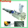PEPipe Production Line 1) uses SJSA double screw extrudung machine as the main machine, assistant machinery:Vacuum spray shape fitting box, three-track hauling off machine, cutting machine, belling machine 2) can produce pipe in the range:20-630mm 3) the pipes are widely used in water transfer or ejection 4) using kinds of moulds, this line can produce large range of pipes 5) we can change production line according to requests and provice technology supply if needed. φ20-φ110PIPEPRODUCTIONLINETECHNICALDATA(φ20-φ110)MainUnitsVacuumspraybathTwocatepillarshaul-offsCuttingmachineStackerOuterDimension(mm)6000×830×12902240×1000×16002000×1650×27005000×1200×1000TotalPower(kw)102.21.50TotalWeight(kg)10001000400100φ63-φ250PIPEPRODUCTIONLINETECHNICALDATA(φ63-φ250)MainUnitsVacuumspraybathThreecatepillarshaul-offsSawsBellingMachineOuterDimension(mm)6440×740×15502680×1420×18502100×1200×15507712×1320×1900TotalPower(kw)1242.212TotalWeight(kg)1030232010002800φ160-φ400PIPEPRODUCTIONLINETECHNICALDATA(φ160-φ400)MainUnitsVacuumspraybathSpraybathFourcatepillarshaul-offsCuttingmachineBellingMachineOuterDimension(mm)6000×1320×16106000×1320×16102675×1540×23003200×1450×23007800×2360×2329TotalPower(kw)1445.56.722TotalWeight(kg)14801150260024003000φ315-φ630PIPEPRODUCTIONLINETECHNICALDATA(φ315-φ630)MainUnitsVacuumspraybathSpraybathsixcatepillarshaul-offsCuttingmachineBellingMachineOuterDimension(mm)6000×1510×16406000×1510×16404000×2300×20003500×1950×24508700×3260×2800TotalPower(kw)165.55.57.535TotalWeight(kg)25001000250035004000