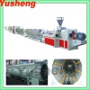 PVC pipe production line 1) uses SJSA double screw extrudung machine as the main machine, assistant machinery:Vacuum spray shape fitting box, three-track hauling off machine, cutting machine, belling machine 2) can produce pipe in the range:20-630mm 3) the pipes are widely used in water transfer or ejection 4) using kinds of moulds, this line can produce large range of pipes 5) we can change production line according to requests and provice technology supply if needed. φ20-φ110PIPEPRODUCTIONLINETECHNICALDATA(φ20-φ110)MainUnitsVacuumspraybathTwocatepillarshaul-offsCuttingmachineStackerOuterDimension(mm)6000×830×12902240×1000×16002000×1650×27005000×1200×1000TotalPower(kw)102.21.50TotalWeight(kg)10001000400100φ63-φ250PIPEPRODUCTIONLINETECHNICALDATA(φ63-φ250)MainUnitsVacuumspraybathThreecatepillarshaul-offsSawsBellingMachineOuterDimension(mm)6440×740×15502680×1420×18502100×1200×15507712×1320×1900TotalPower(kw)1242.212TotalWeight(kg)1030232010002800φ160-φ400PIPEPRODUCTIONLINETECHNICALDATA(φ160-φ400)MainUnitsVacuumspraybathSpraybathFourcatepillarshaul-offsCuttingmachineBellingMachineOuterDimension(mm)6000×1320×16106000×1320×16102675×1540×23003200×1450×23007800×2360×2329TotalPower(kw)1445.56.722TotalWeight(kg)14801150260024003000φ315-φ630PIPEPRODUCTIONLINETECHNICALDATA(φ315-φ630)MainUnitsVacuumspraybathSpraybathsixcatepillarshaul-offsCuttingmachineBellingMachineOuterDimension(mm)6000×1510×16406000×1510×16404000×2300×20003500×1950×24508700×3260×2800TotalPower(kw)165.55.57.535TotalWeight(kg)25001000250035004000